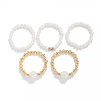 Boho Pearl Chain Bracelet Set for Women – 5Pcs Layered Beaded Bangles